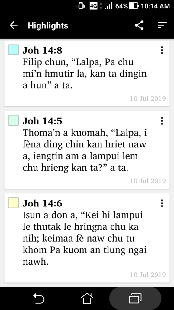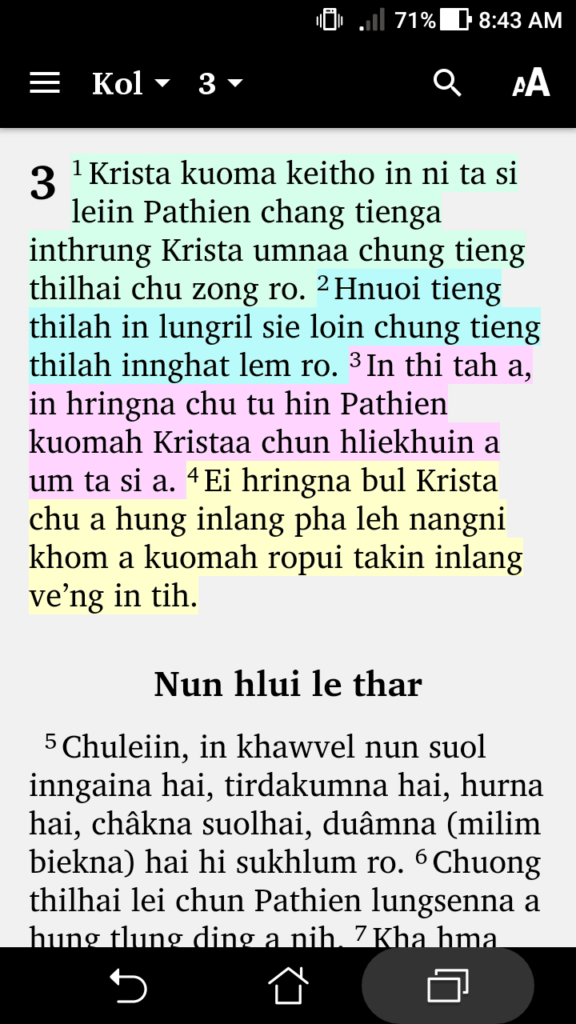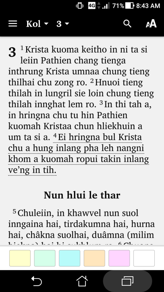 - Highlightable Bible text with different colours
